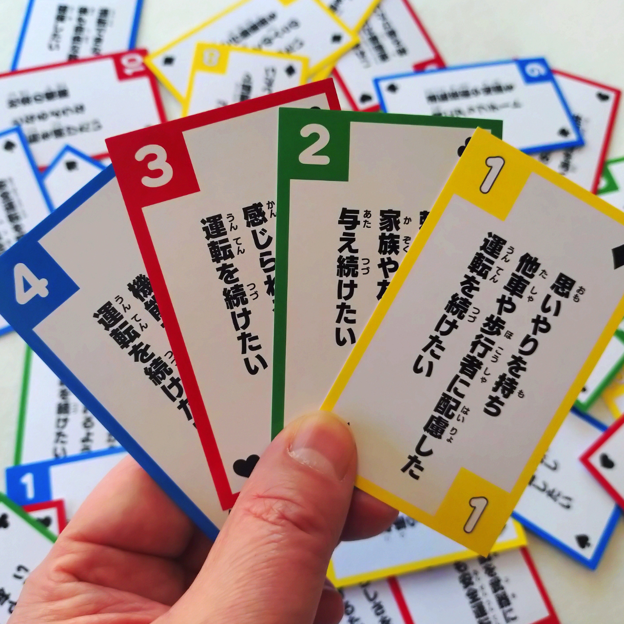 多くのドライバーは、心の中に独自の運転の「美学」や「目標」を持っています。その証拠に、自らの運転に家族といえども、何か運転に注文をつけられると怒る人が多いと思います。しかし、それらは言語化されておらず、漠然としています。3Dカードを使ったワークを行うと、わずか10分程度で、その人が大切にしている運転の目標を引き出し、明文化することができます。